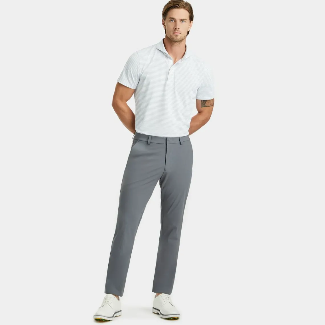 The Tech Tour 4-Way Stretch Straight Leg Pant Has A Modern Fitting Cut With Technical Properties Ideal For Active Wear. Designed With Input From Touring Professionals, The Lightweight, Breathable, Moisture-Wicking Fabric Makes This Style A Go-To For Upgrading Your Golf Game. Pair With A Lightweight Technical Performance Fine Wool Modern Spread Collar Polo For A Classic Combination.